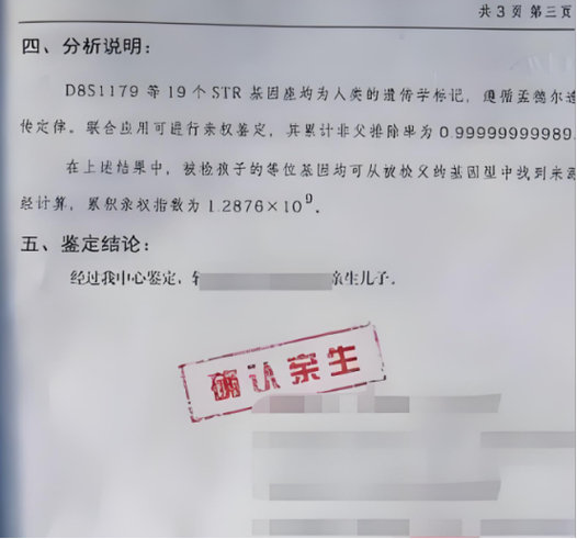报告上写着:累计亲权指数大于99.99% 。