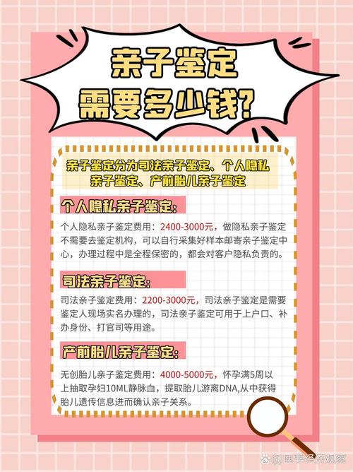 用途说明:个人隐私鉴定,仅为满足知情权起作用,费用是最低的;司法鉴定,要在现场进行采样,还要拍照存档,费用会增加500至800元;产前无创鉴定,鉴于技术存在壁垒,单例费用通常处于3500到5000元一带。
